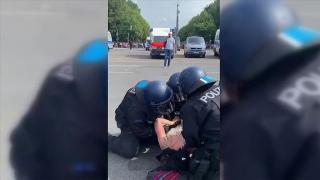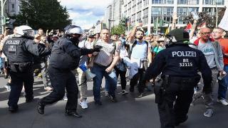 Almanya'nın başkenti Berlin'de, polisin yeni tip koronavirüs (Kovid-19) önlemlerini protesto eden biri hamile iki kadın göstericiye şiddet uygulaması tepkilere neden oldu.
