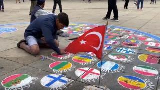 Almanya'da ülke bayraklarını yere çizen sanatçı Türk bayrağını asmayı tercih ediyor