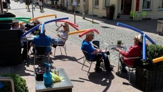Almanya Schwerin'de bulunan Kafe Rothe, sosyal mesafe kuralını uygulamanın ilginç bir yolunu buldu. Kafeye gelen müşterilere, üzerinde havuz makarnası bulunan hasır şapkalardan veriliyor. Müşteriler bunları giydiğinde, uzun makarnalar sayesinde birbirlerine belli bir mesafeden fazla yaklaşamıyorlar.