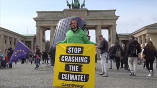 Çevreci örgüt Greenpeace üyeleri, Berlin'deki Brandenburg Kapısı önünde Alman hükümetinin ulaşım politikasına karşı protesto düzenledi.