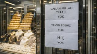 Altın fiyatlarının düşmesiyle Türkiye genelinde kuyumcularda yoğunluk oluştu. Bursa’da bir kuyumcu, stoklar tükenince camına “yok” yazısı astı.