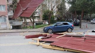 Denizli'nin Pamukkale ilçesinde etkili lodos nedeniyle bir apartmanın çatısı uçtu, 6 araç zarar gördü.