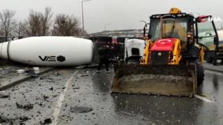 Sultangazi’de sürücüsünün seyir halinde direksiyon hakimiyetini kaybetmesi sonucu aydınlatma direğine çarpan beton mikseri otomobilin üzerine devrildi. Kaza sonrası araçlarda sıkışan 2 yaralı itfaiye ekipleri tarafından çıkarılarak sağlık ekiplerine teslim edildi.