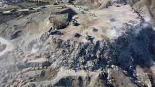 Depremde yıkılan binaların toplandığı enkaz alanı 'dağ' gibi yükseliyor