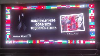 İstanbul Havalimanı'nın bilgi ekranlarında, Kahramanmaraş merkezli depremler dolayısıyla Türkiye'ye yardım ve ekip gönderen ülkelere kendi dillerinde teşekkür ediliyor.