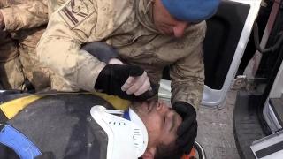 Enkazdan 104 saat sonra çıkarılan depremzede, kurtarma ekibindeki askerin elini öptü
