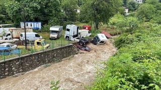 Zonguldak'ta sağanak nedeniyle Çaydamar Deresi taştı, bazı iş yerlerini su bastı.