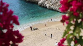 Antalya Kaş'ın yüksek kesimlerine kar yağmasına rağmen, sahilinde yazdan kalma günler yaşanıyor. Dünyaca ünlü Kaputaş Plajı, kasımda da tatilcileri ağırlamaya devam ediyor.