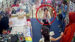 İstanbul'da bulunan bir mağazaya alışveriş yapmak için gelen kadının başına beğendiği avize düştü. Yaşanan o anlar saniye saniye güvenlik kamerasına yansıdı.