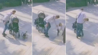 İzmit'te, bebek arabasıyla çocuğunu gezdiren baba, arabadan düşen çocuğu tokatladı. Baba, çocuğu kolundan çekip alarak bebek arabasına atarcasına koyarken, o anlar güvenlik kameralarına yansıdı.