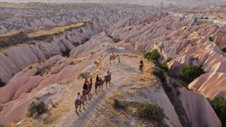Kapadokya'nın masalsı manzarasını deve safari ile keşfediyorlar