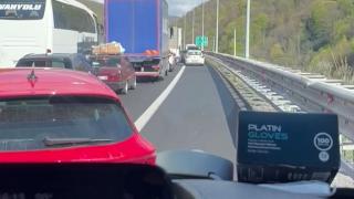 Bayram tatili yolunda TEM Otoyolu’nun Bolu Dağı Tüneli kesiminde 5 aracın karıştığı trafik kazasına ulaşmak için yola çıkan ambulans şoförünün, emniyet şeridini ihlal eden sürücüler sebebiyle yaşadığı zor anlar kameraya yansıdı.