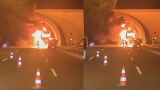 Orhangazi Tüneli’nde yolcu otobüsü alev alev yandı