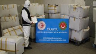 Kapıkule Sınır Kapısı'nda Avrupa'ya çıkış hazırlığındaki bir tırda 573 bin 750 tıbbi maske ele geçirildi. 2 kişi gözaltına alındı.