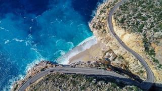 Antalya'da turkuaz rengi suyuyla dünyaca üne sahip Kaputaş Plajı, kış mevsiminde de manzarasıyla görenleri etkiliyor.