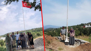 Kesin dönüş yapan gurbetçi yıllarca hasretini çektim dedi, dev Türk bayrağı dikti