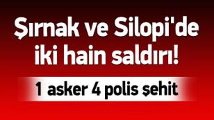 Şırnak'ta askeri helikoptere roketatarla düzenlenen saldırıda 1 asker, Silopi'deki mayınlı saldırıda ise 4 polis şehit oldu.