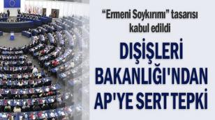T.C Dışişleri Bakanlığı, Avrupa Parlamentosu'nun Ermeni tasarını kabul etmesine sert tepki gösterdi.