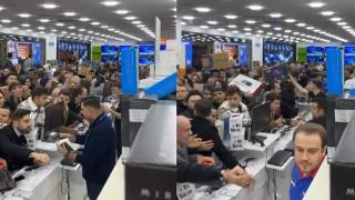 Bursa’da bir elektronik mağazasının açılışında vatandaşlar indirimli ürünlere koştu. Oluşan izdiham ise cep telefonu kamerasıyla kaydedildi.