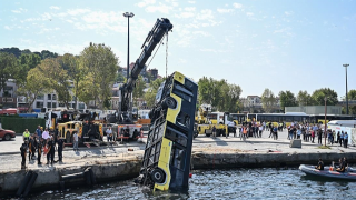 Eminönü'nde denize düşen İETT otobüsü çıkarıldı