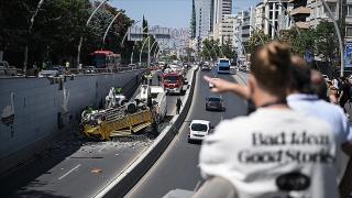 Ankara'da kamyon alt geçitteki hafif ticari aracın üzerine devrildi