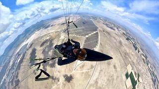 Konya'nın Karapınar ilçesinde kurulan, 2 bin 800 futbol sahası büyüklüğündeki Karapınar Güneş Enerjisi Santrali (GES), yamaç paraşütü pilotu tarafından aksiyon kamerasıyla görüntülendi.
