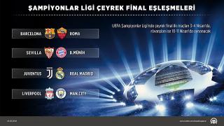 Avrupa futbolunun bir numaralı organizasyonu UEFA Şampiyonlar Ligi'nde çeyrek final kura çekimi yapıldı.