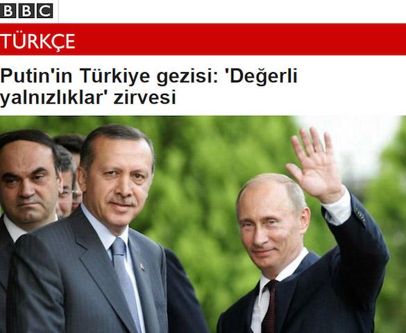 BBC, Rusya Devlet Başkanı Putin'in Türkiye'ye yaptığı 100 milyar dolarlık ziyareti, "Değerli yalnızlıklar zirvesi" olarak yorumladı.