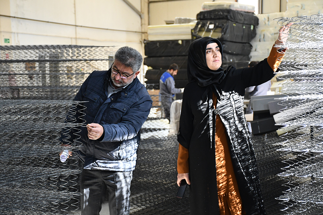 Başarılı iş kadını, yaptığı açıklamada, OSB'de 5 bin metrekare kapalı alana sahip atıl durumdaki bir bulgur fabrikasını tamamen yenileyip üretime devam ettiklerini belirterek "Küçük sanayi sitesinde 500 metrekare alanda 3 kişiyle başladığımız üretime, şu anda 5 bin metrekare kapalı alanda 20 elemanla devam etmekteyiz. İlk sene 800 olan yatak kapasitemizi şu anda OSB'de 18 bin takıma çıkarmış durumdayız. Yani ilk planda sadece yatak üretiyorduk. Şimdi bunun ayrılmaz parçaları olan baza ve başlıkları da üretiyoruz." diye konuştu.