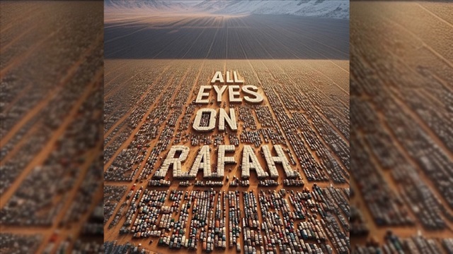 Dünya genelinde 30 milyonu aşkın Instagram kullanıcısı, yapay zeka tarafından üretilen "All Eyes on Rafah-Tüm Gözler Refah'ta" yazılı görseli paylaşarak tepkisini ortaya koydu.