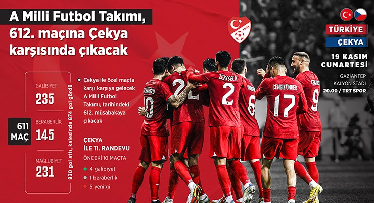 Çekya ile özel maçta karşı karşıya gelecek A Milli Futbol Takımı, tarihindeki 612. müsabakaya çıkacak.