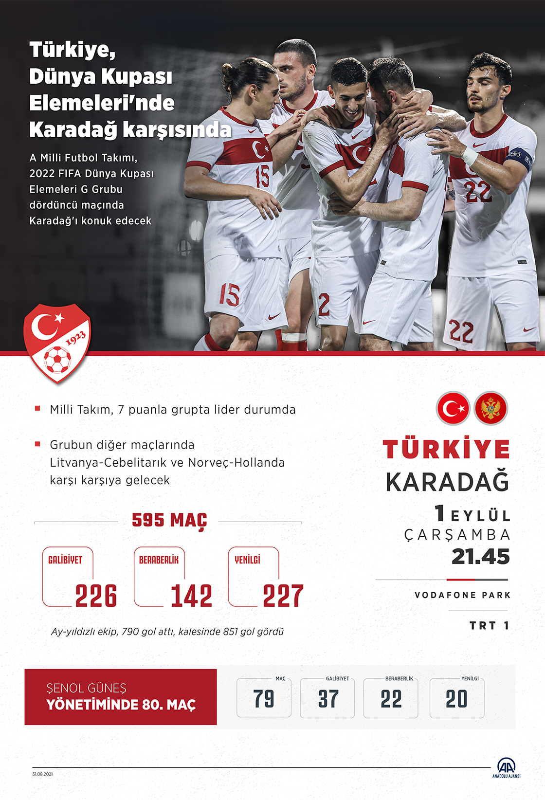 A Milli Futbol Takımı, Karadağ maçıyla tarihinde 596. kez sahaya çıkacak.