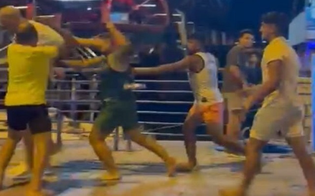 O anlar cep telefonu kamerasına yansırken, çevredekiler, “Yapmayın, kaç kişi adama saldırıyorsunuz. Tek başına adam yazık değil mi?” diyerek sopalı gruba tepki gösterdi. Kavga sonrası gurbetçi gencin kafasında kanamalar meydana geldiği görüldü.
