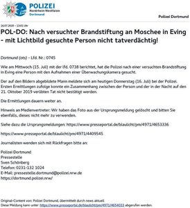 Dortmund Ulu Cami 21 Ekim 2019 gecesi molotof kokteyli atılarak kundaklandı. Polis, 9 ay sonra 'Kundakçıyı tespit ettik. İşte fotoğrafı da bu. Tanıyorsanız bize yardımcı olun' şeklinde bir yazılı açıklama yapıp basına servis etti. Savcı ve hâkimin onayından geçen 19 yaşındaki Emircan Taşçı'nın fotoğrafını gören ailesi şoke oldu, polise koştu.