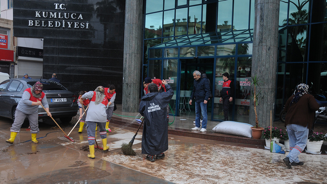 Öte yandan Kumluca Belediye binasının altındaki kapalı otoparkta su baskını olduğu ve çok sayıda aracın su altında kaldığı bildirildi.