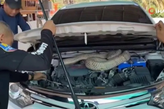 Tayland'ın Chanthaburi eyaletinde bulunan bir köyde park halindeki otomobilinin etrafında köpeğinin ısrarla havlaması üzerine kaputu açan bir kadın, devasa yılanla karşılaştı. Yetkililere haber verilmesi üzerine eve uzman ekipler geldi. Kaputtan çıkarılan yılanın, 4 metre 25 santimetre uzunluğunda, 16 kilogram ağırlığında ve dünyanın en zehirli yılan türü olarak bilinen "kral kobra" olduğu tespit edildi.
