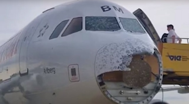 Palma de Mallorca'dan Viyana'ya gelen OS434 sefer sayılı uçuş sırasında meydana gelen olayda, Airbus A320'nin ön kokpit camları, burun kısmı (radom) ve bazı kaplamaları hasar gördü. Olayın ardından "Mayday" acil durumu ilan edildi. Uçak, güvenli bir şekilde saat 17.55'te iniş yaptı.