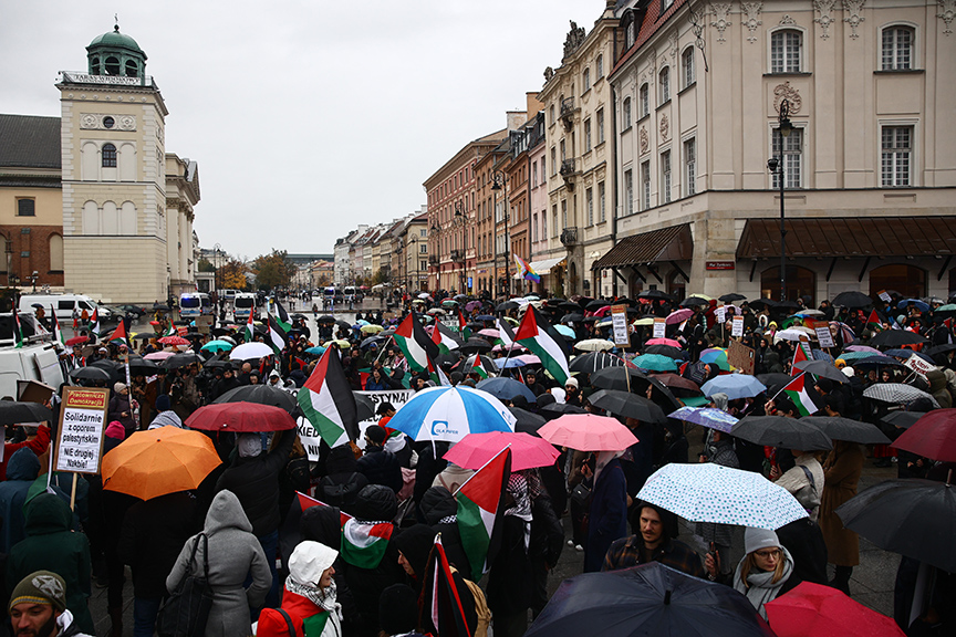 Başkentin eski şehir meydanı Plac Zamkowy'de bir araya gelen yüzlerce kişi, İsrail’in Gazze’ye saldırılarını protesto etti, Filistin’le dayanışma mesajı verdi.