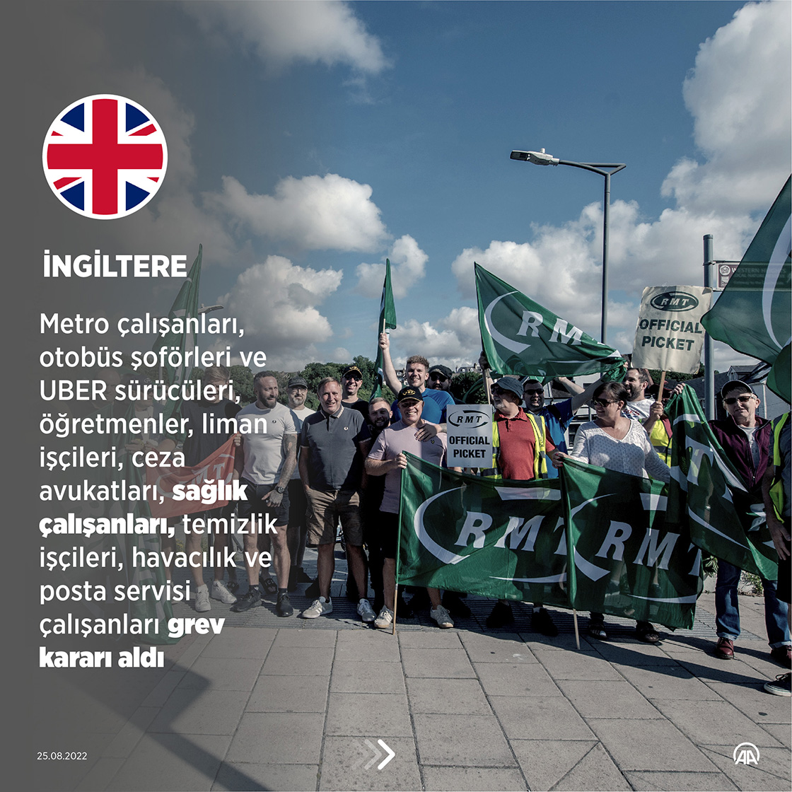 İngiltere’de artan enflasyon karşısında çalışanların gelirlerinin erimesi ve enflasyonun altında teklif edilen maaş zamları nedeniyle son haftalarda farklı sektörlerde işçi sendikaları toplu grev kararları aldı.
