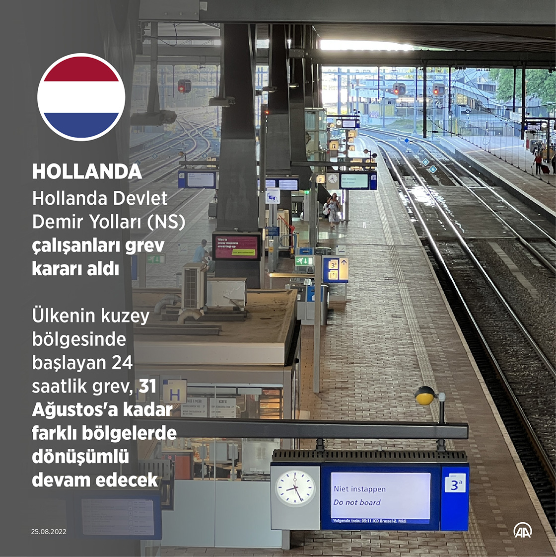 Hollanda İşçi Sendikaları Konfederasyonu (FNV) ve diğer sendikaların çağrısıyla ülkenin kuzey bölgesinde başlayan 24 saatlik grev, 31 Ağustos'a kadar farklı bölgelerde dönüşümlü devam edecek.