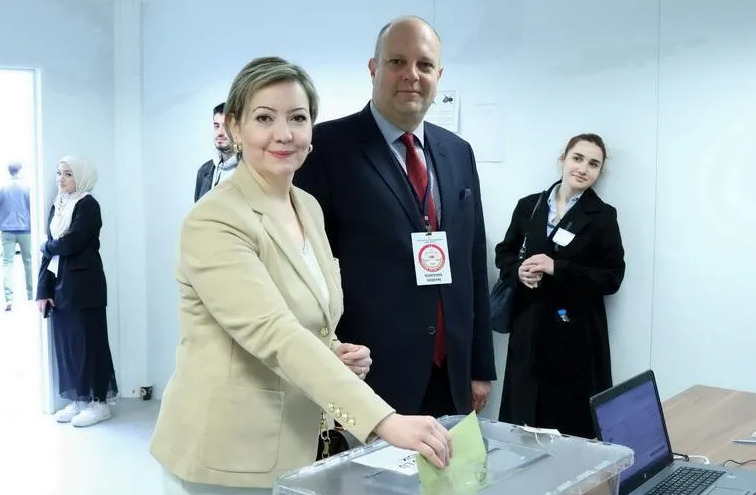 Berlin Büyükelçisi Ahmet Başar Şen, oyunu Berlin Başkonsolosluğu’nun bahçesinde kurulan seçim merkezinde 6 numaralı sandıkta kullandı. Elçi müsteşar Funda Yücekök ile Berlin Başkonsolosu Rıfkı Olgun Yücekök aynı yerde oy verdi. Büyükelçi Şen, Almanya’daki vatandaşlarımıza oylarını kullanma çağrısında bulunurken, konsolosluk ve seçim merkezi görevlilerinin bu konuda seçmenlerin hizmetinde olduğunu vurguladı. Aynı zamanda Almanya’daki başkonsolosluklarda vatandaşlarımızın 24 Mayıs’a kadar her gün 08.00-22.00 saatleri arasında oy kullanabileceklerine dikkati çekti. Başkonsolosluklardaki sandıklarda 5 gün oy kullanma imkânı bulunurken, Aachen, Bremen ve Regensburg’da açılan sandıklarda sadece cumartesi ve pazar günü 09.00-18.00 saatleri arasında oy kullanılacak. Büyükelçi Şen, temsilcilikler dışında oy kullanmak isteyenlerin ise gümrüklerde 28 Mayıs saat 17.00’ye kadar oy verebileceklerini hatırlattı.