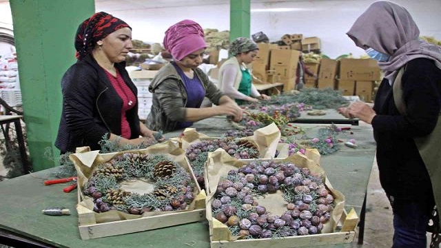 Günde bin- bin 500 adet üretim yaptıklarını belirten Emine Aladağ, "Ürünlerimizin satış fiyatı 3 Euro ile 5 Euro arası değişiyor. Modeline, içerisinde kullanılan malzemeye ve çapına göre fiyatı değişiyor. 40 bin civarında çelenk yaptık, yılbaşına kadar 100 bin adet yapmayı hedefliyoruz. İklim şartlarına bağlı olarak bu sayı azalıp artabilir. 10 sabit personelimiz var. Evden çalışan kadınlarımız var. Evlerine ürün temin ediyoruz. Evde çelenkleri yapıyorlar, biz onlardan satın alıyoruz" dedi.