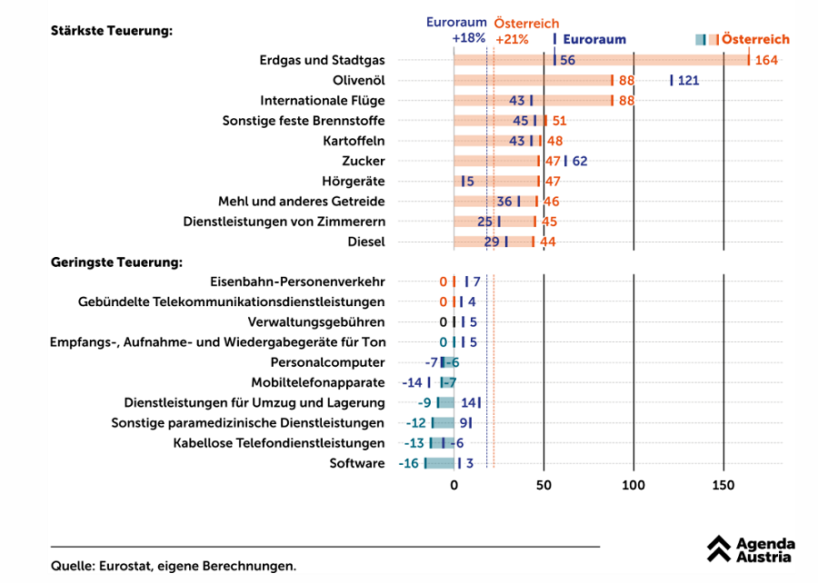 Bu oran, devlet tarafından düzenlenen fiyat kontrolleri uygulayan İspanya'nın Mayıs ayındaki %3,8'lik enflasyon oranının gerisinde kalıyor. Ancak, bu durum Avusturya için zayıf bir teselli, çünkü son üç yılda enflasyon hane bütçelerini önemli ölçüde etkiledi. Bu süre zarfında ucuzlayan pek az şey oldu; bu durumu Agenda Austria'nın yaptığı bir analiz de doğruluyor.