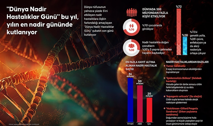 VİYANA – Bugün Nadir Hastalıklar Günü. Avrupa Birliği (AB) tanımına göre, bir hastalığın "nadir" sayılması için her 10.000 kişide en fazla 5 kişiyi etkilemesi gerekiyor. Sağlık Bakanlığı verilerine göre, şimdiye kadar 6.000 ila 8.000 farklı nadir hastalık tespit edildi.