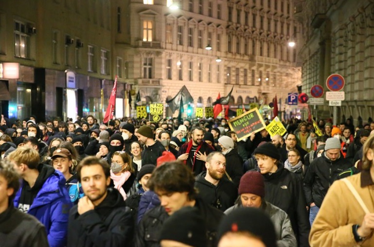 Avusturya ve Almanya başta olmak üzere Avrupa'daki aşırı sağcı ve ırkçı oluşumların bir araya geldiği baloya karşı ikinci protesto ise sol gruplar tarafından düzenlendi.