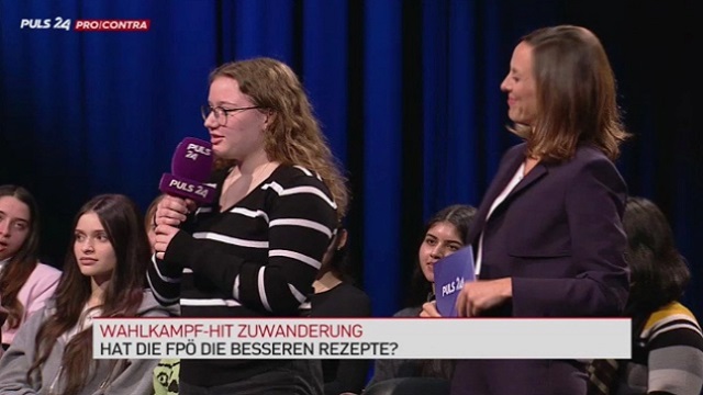 Puls 4'ün "Pro und Contra" programına çok sayıda lise öğrencisi katılarak ve siyasilere çeşitli sorular yönelttiler.