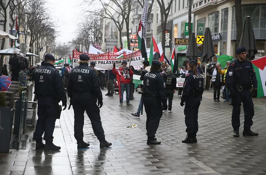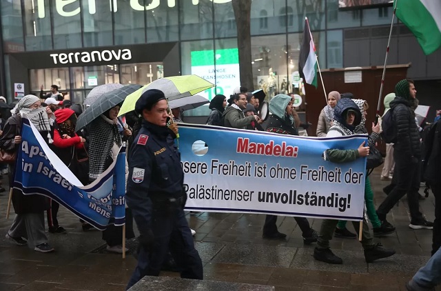Başkentin önemli caddelerinden Mariahilfer’de bir araya gelen göstericiler, Filistin bayraklarının yanı sıra "Acil ateşkes", "Soykırıma hayır" ve "Özgür Filistin" yazılı pankartlar taşıdı.