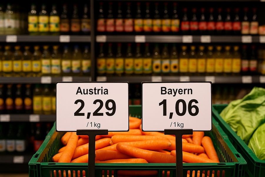 AK-Salzburg Başkanı Peter Eder, özellikle havuç fiyatına dikkat çekerek örnek verdi: Avusturyada'ki süpermarketlerde havuç ortalama %117 daha pahalı. Eder, “Biri bana bu fiyat farkını mantıklı açıklasın!” diyerek durumu eleştirdi.
