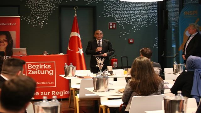 Avusturya'da faaliyet gösteren Türk iş insanlarının katıldığı etkinlikte Türkiye'nin Viyana Büyükelçisi Ozan Ceyhun konuşma yaptı.