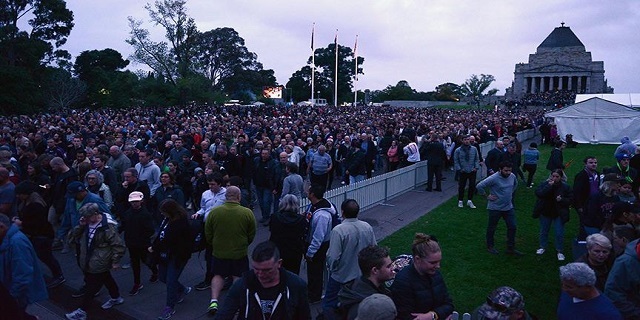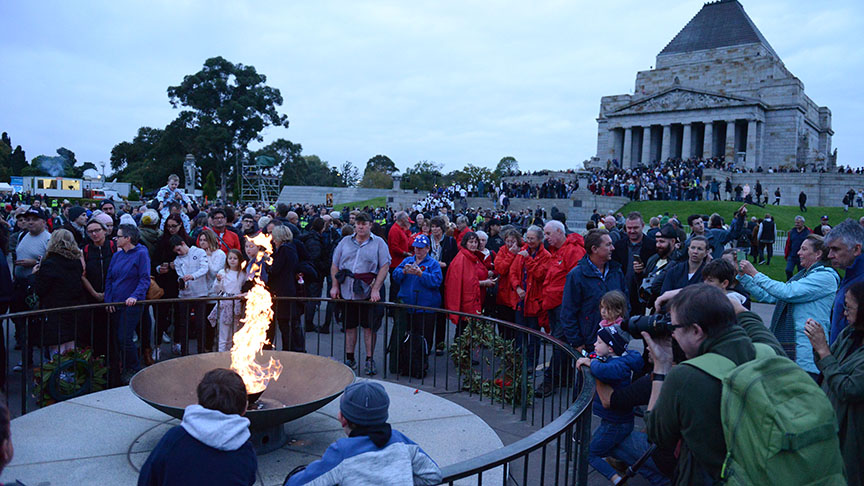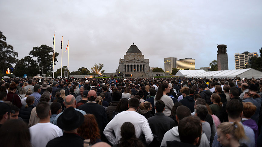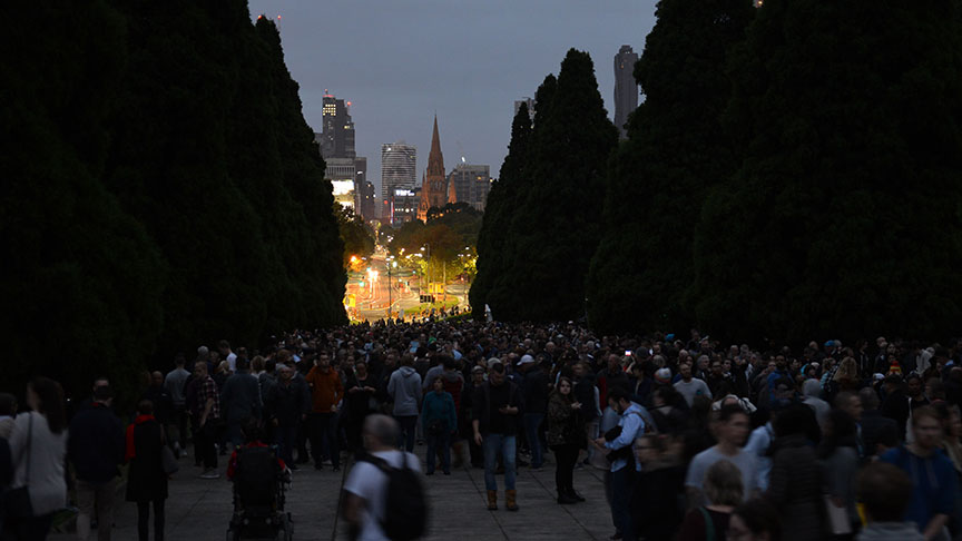 Sabahın ilk ışıklarında Gelibolu'ya Anzak askerleri tarafından yapılan çıkarmanın zamanı dikkate alınarak organize edilen Melbourne'deki "Şafak Ayini"ne on binlerce Anzak torunu katıldı.